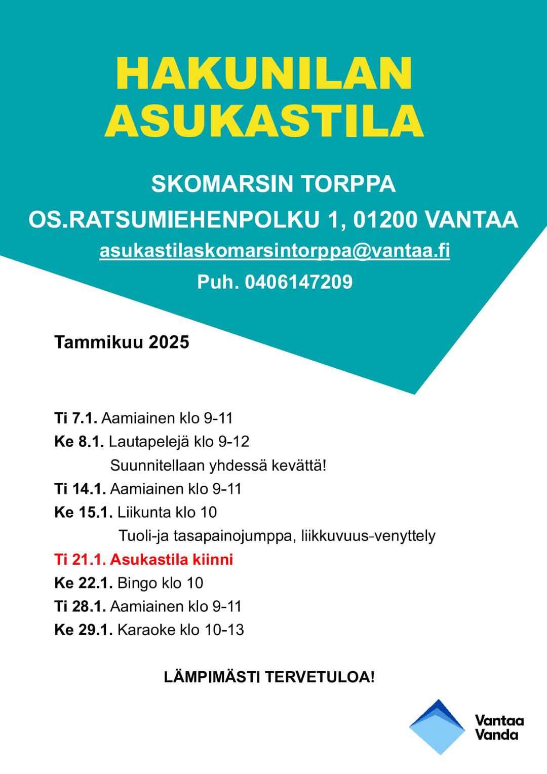 Asukastila toimii alueen asukkaiden yhteisenä olohuoneena ja toimintaa suunnitellaan sekä toteutetaan yhdessä kävijöiden kanssa. Tervetuloa! "