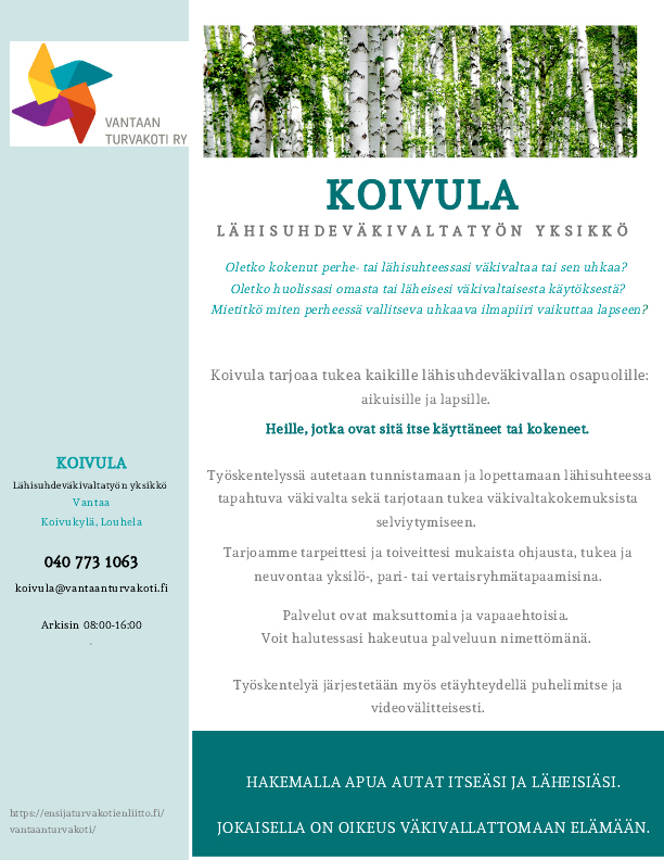 - Kaikkia, jotka ovat kokeneet henkistä, fyysistä tai seksuaalista väkivaltaa tai väkivallan uhkaa läheisessä ihmissuhteessaan