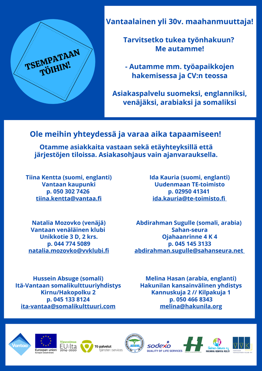 Tukea työn & koulutuksen etsimiseen yli 30v. vantaalaisille maahanmuuttajille