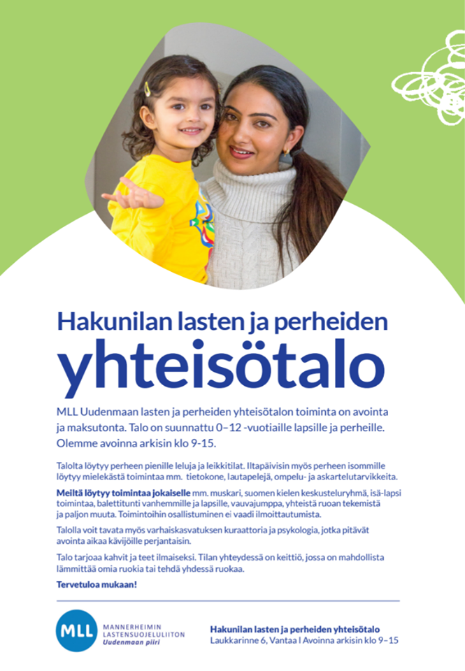 | Hakunilan lasten ja perheiden Yhteisötalo | Lapsiperheiden kotipalvelu | Mannerheimin Lastensuojeluliitto | HOPE |